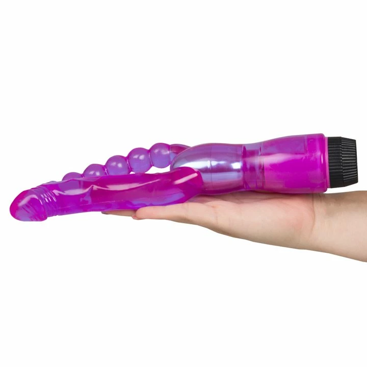 Measuring 10 inches in total, itβs double trouble with Bondara’s Clear Purple Double Penetration Vibrator. Get twice the pleasure as you slip the slim, penis-shaped body inside and let the gentle curve better target your G-spot. Meanwhile, the anal stimulator is lined with beads for enhanced sensations during insertion and removal.Β
