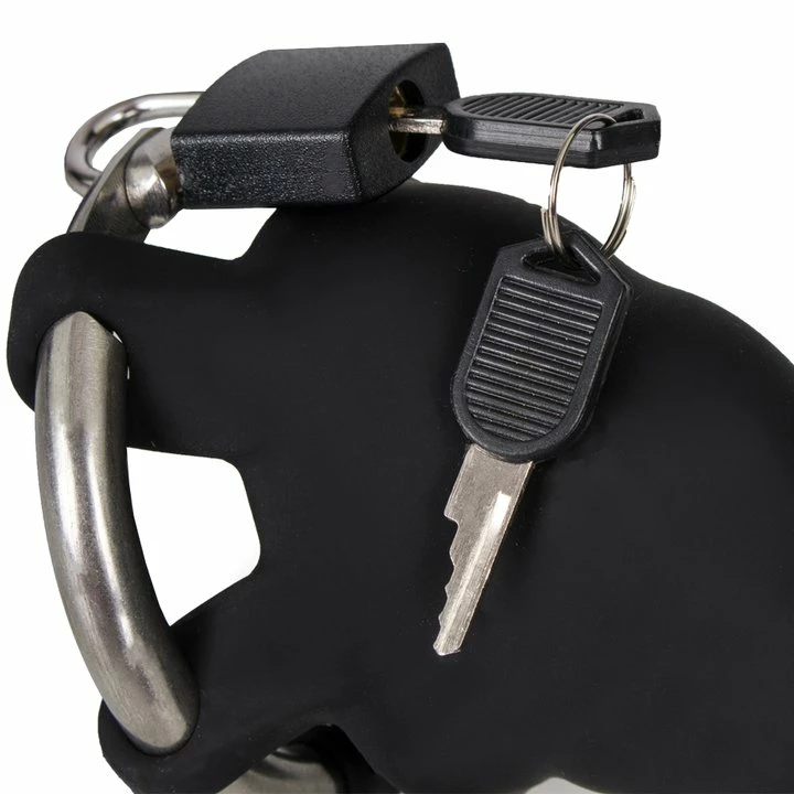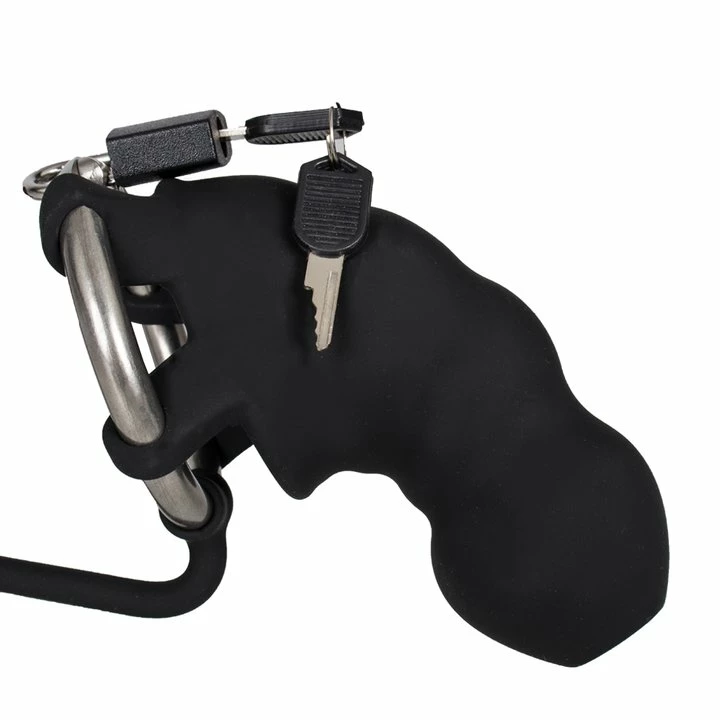 There, the stainless steel ring wraps his package. Choose from three sizes as you adjust the ring to the best fit before leaving your shaft encased inside the sleeve. The breathable silicone offers unparalleled comfort while the hole at the tip provides an exit for liquids and urine, perfect for extended wear. Your Ass-Gasm Cock Blocker comes with one padlock, two keys and three plastic chastity locks.Β