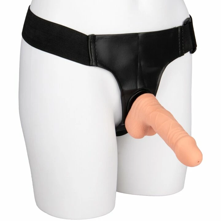 Pure strap-on satisfaction on a belt. This perfectly sculpted 6 inch solid jelly dildo with its shaped head and vein covered shaft will provide all the thrills you have been waiting for. While the shaft and head massage and penetrate you internally, the generously sized balls provide you with additional clitoral stimulation. This best-selling strap-on comes complete with this delightful solid jelly cock and balls dildo and a fully adjustable elasticated harness. Strap it on for a hot and wild session.