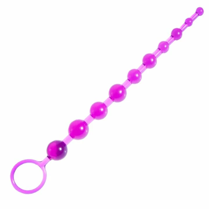A delightfully large set of anal beads – for untold stimulation and explosive orgasms! 10 inches of pure satisfaction! 10 pliable and translucent graduated jelly anal beads with a handy retrieval handle. Insert them into your anus and withdraw the jelly anal beads either slowly or very fast for a highly explosive climax. The orgasms possible using these fantastic jelly anal beads are terrific. Includes a finger ring to allow for an easy and perfectly timed exit. Classic and still the best.