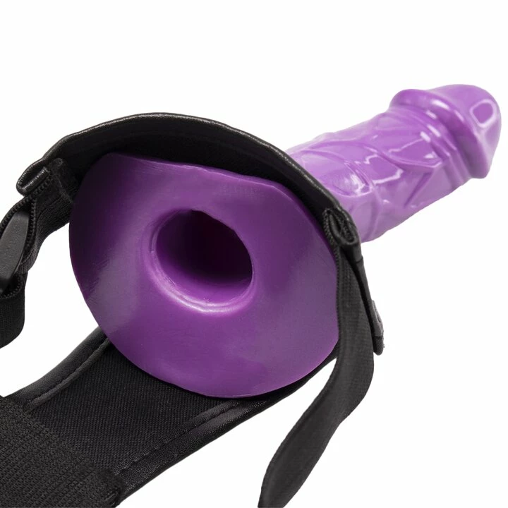 β’ Purple strap-on has a hollow core to adapt to male and female wearersΒ