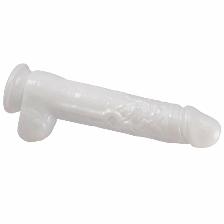 • Large realistic dildo features stimulating contours and textures in pearlescent white